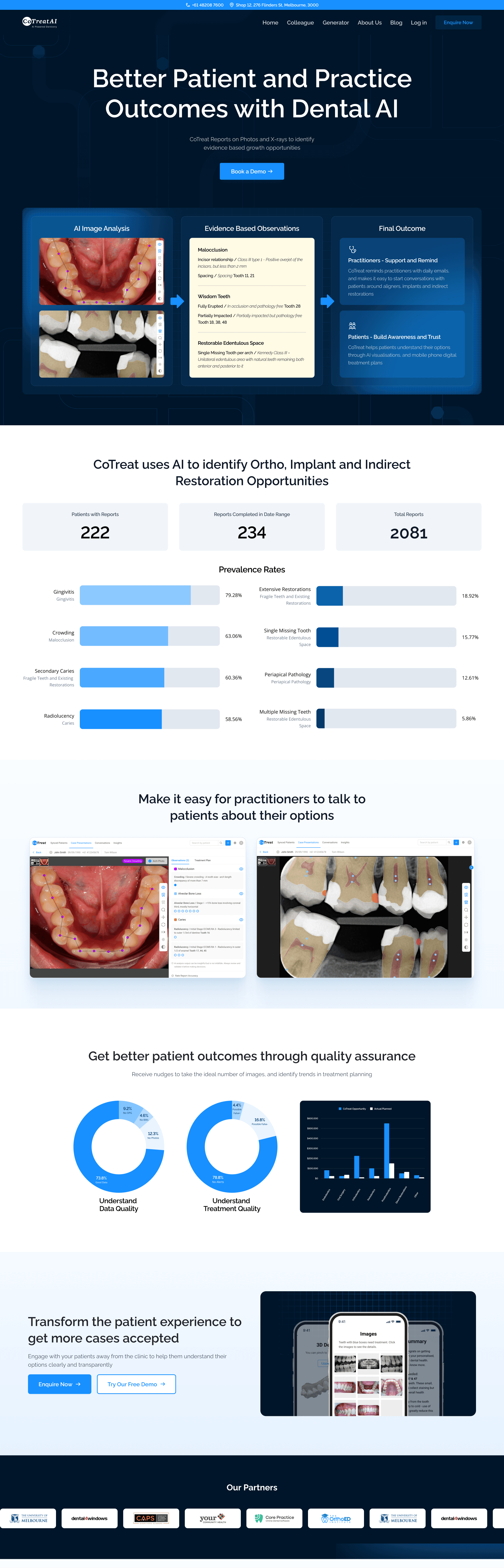 Our redesign of CoTreat’s website enhanced user experience and streamlined navigation, reinforcing their leadership in AI-powered dentistry and driving business growth.